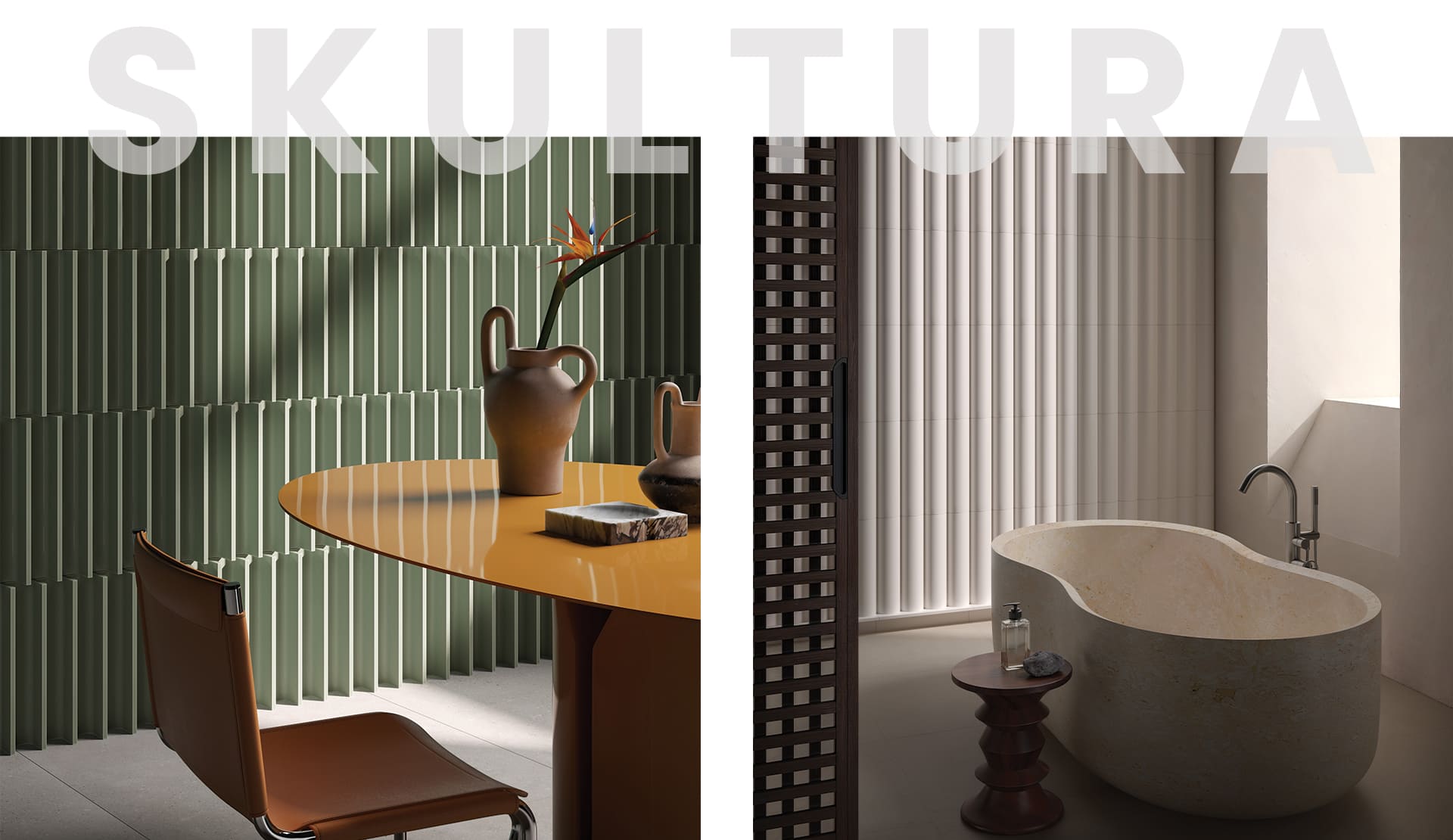 Skultura nasce dall’ambizione di elevare la ceramica oltre la funzione di superficie, trasformandola in un vero e proprio strumento di progettazione. I moduli tridimensionali, dalle forme morbide o spigolose, dialogano con la luce generando ombre, riflessi e profondità che cambiano con le ore del giorno.