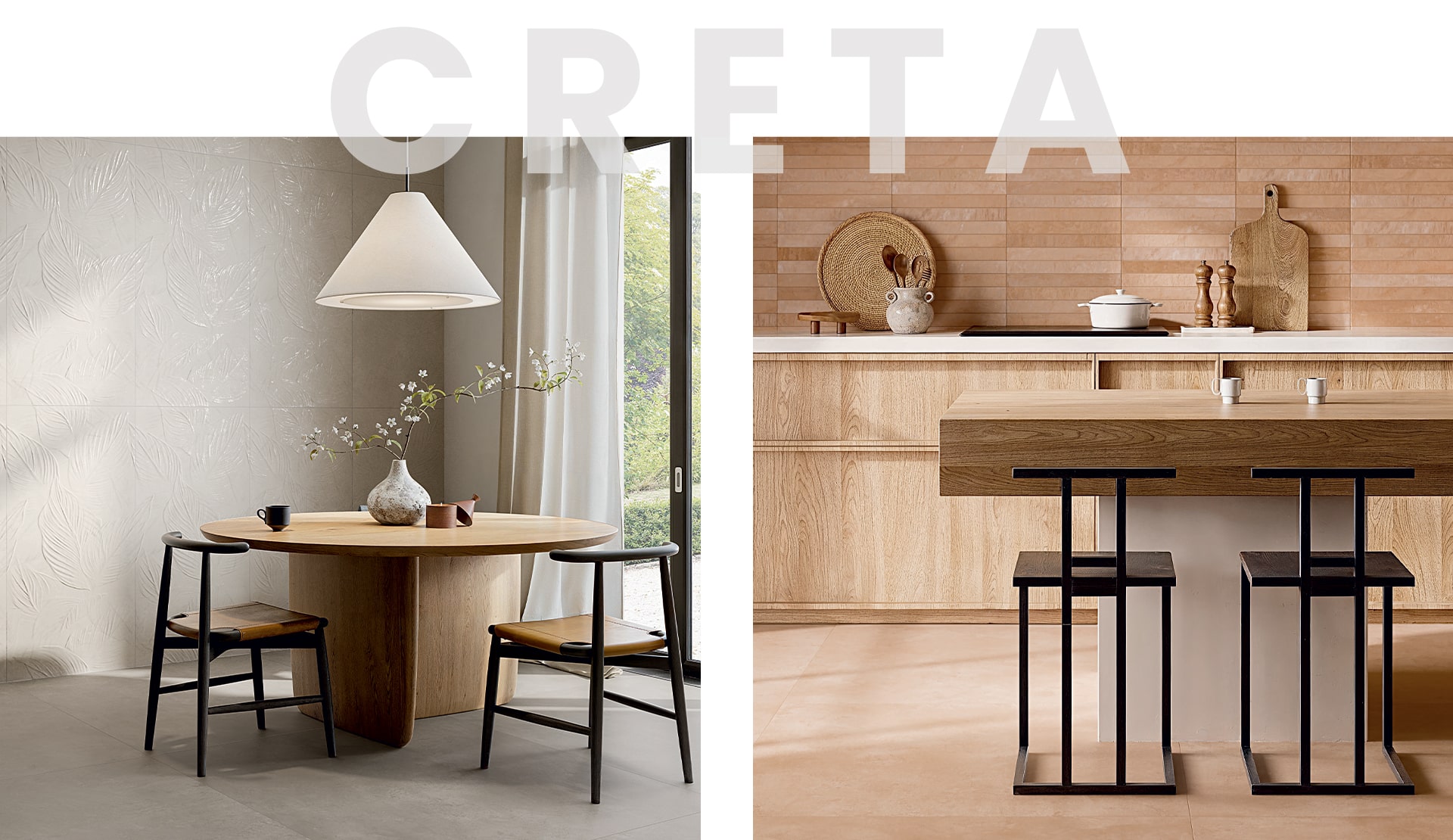 Le nuove ambientazioni raccontano Creta in chiave contemporanea, mantenendo la sua anima calda e sofisticata, ideale per chi cerca superfici accoglienti e senza tempo.