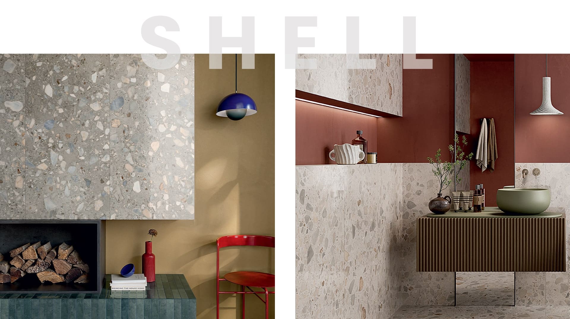 Shell si rinnova nelle cromie e nei formati, mantenendo l’eleganza che la contraddistingue. La sua doppia finitura 3D Matt e 3D Saten permette di giocare con effetti tattili e visivi, mentre i due nuovi formati da esterno creano continuità tra indoor e outdoor. Una collezione versatile e raffinata, capace di adattarsi con naturalezza a diversi contesti architettonici.